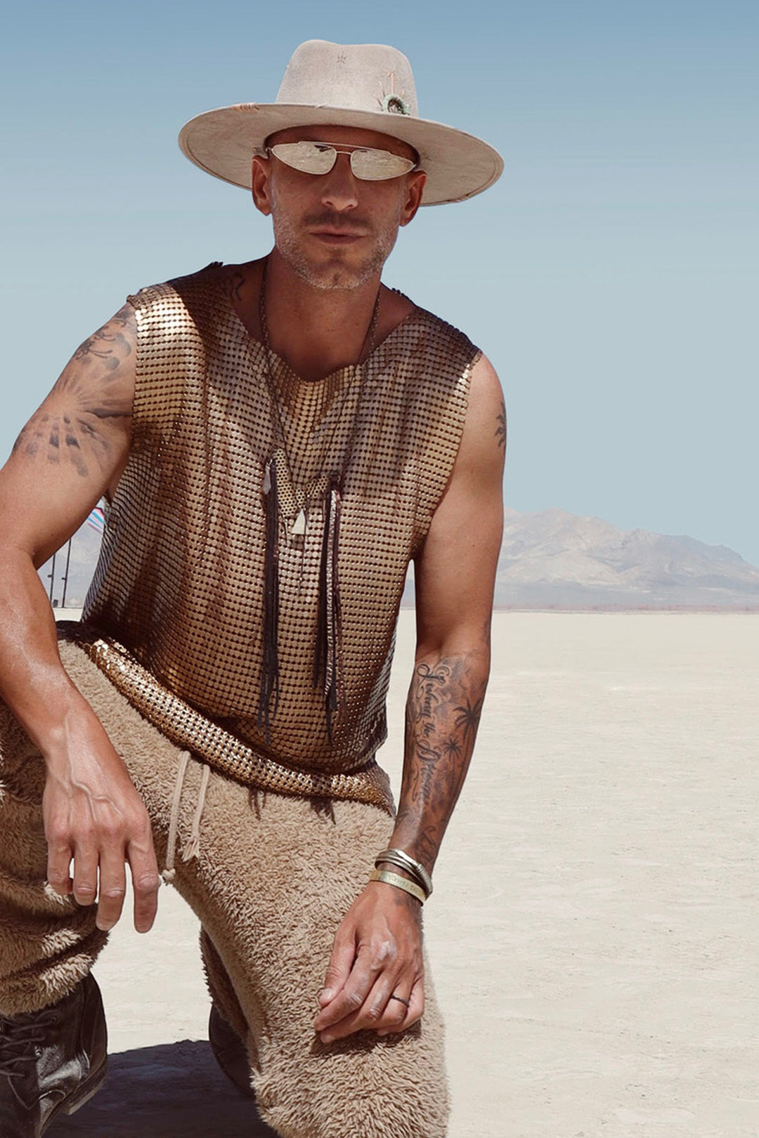 Unisex vest/dress, handwoven from recycled aluminium in matte bronze colour.
