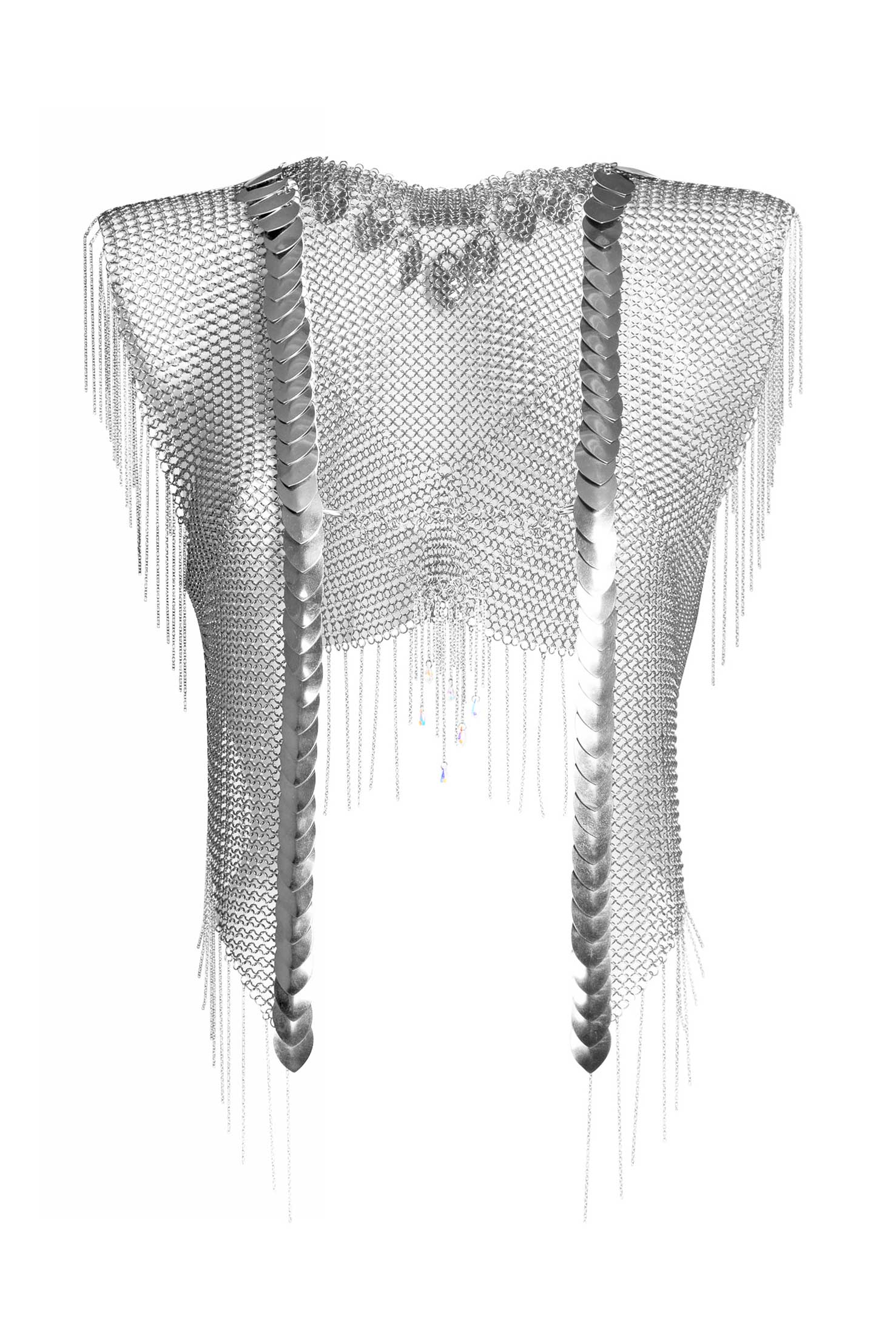 Signature piece Phoenix waistcoat, made from stainless steel rings & adorned with Swarovski Crystals in our Ibiza atelier.