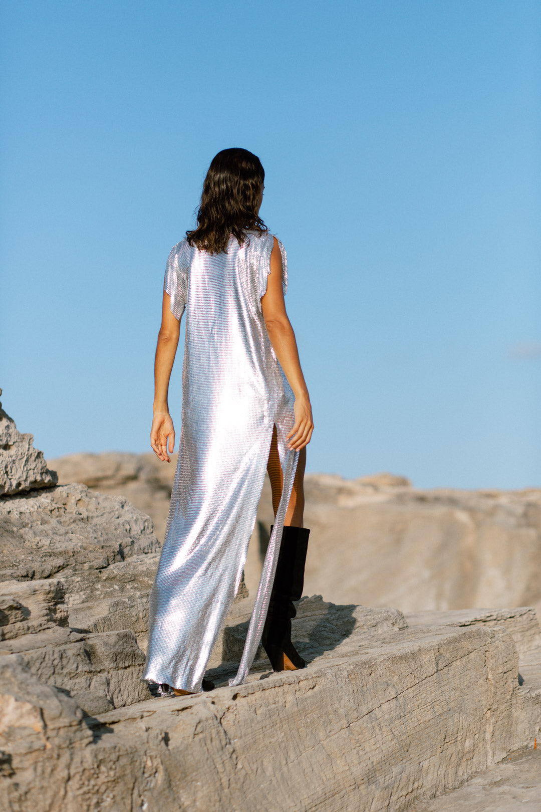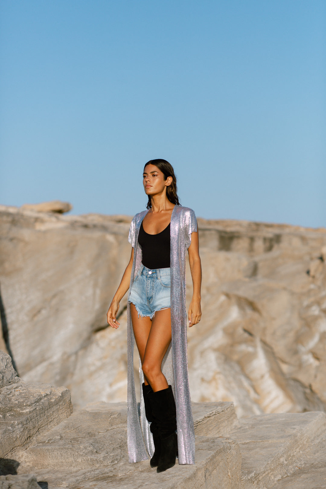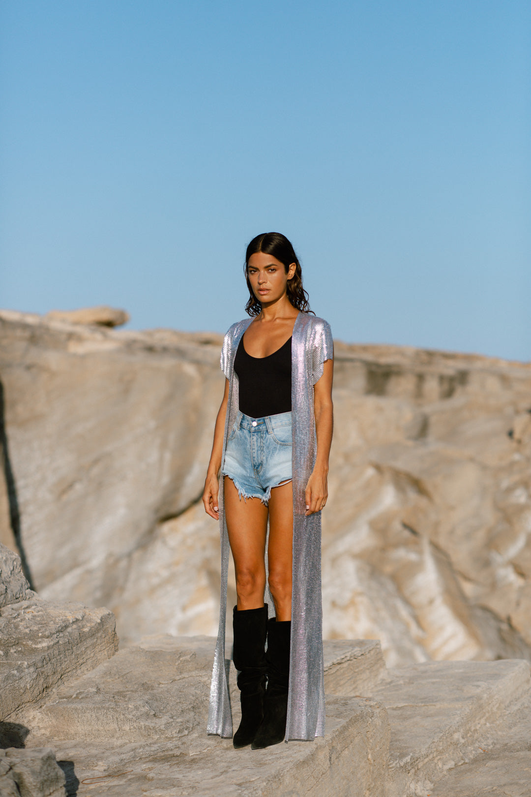 The ultimate maxi-waistcoat, handmade from recycled aluminium.